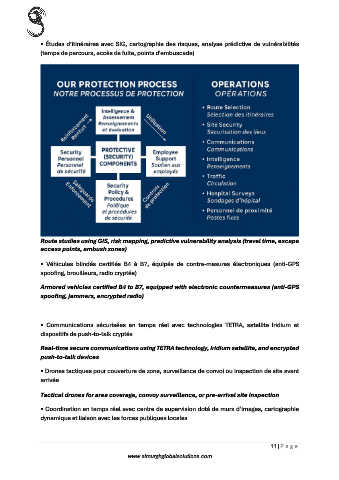 • Véhicules blindés certifiés B4 à B7, équipés de contre-mesures électroniques (anti-GPS