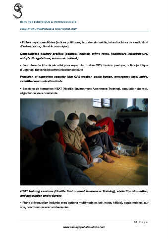 • Sessions de formation HEAT (Hostile Environment Awareness Training), simulation de rapt,